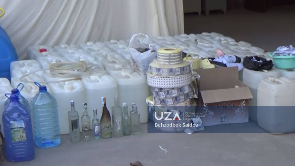 Тадбирда ушбу туманнинг “Бахшилар” маҳалласида яшовчи фуқаро, яшаш хонадонида яширин цех ташкил қилиб, қўлбола усулда алкоголли маҳсулотлар ишлаб чиқариш билан шуғулланиб келаётганлиги фош этилди. Унинг яшаш хонадонида 1 минг 50 литр спирт, 2 минг 345 дона қопқоқ плёнкалари, 1 минг 330 дона шиша қопқоқлари, 17 минг дона 3 турдаги алкоголь шиша этикеткаси, 2 минг 500 дона қалбаки акциз марка, 286 дона бўш шиша идишлари, ароқ маҳсулотини қадоқлаш қутиси учун мўлжалланган 471 дона акциз марка, қалбаки бўлган турли ҳажмдаги қўлбола усулда тайёрланган 4 турдаги 1 минг 595 шиша спиртли ичимликлар, 71 минг 500 дона қалбаки маркировка, 45 минг 600 дона ҳимоя лентаси, қўлбола усулда тайёрланган спиртли ичимликларни сақлашга мўлжалланган 1 дона 250 литр ҳажмли елим идиш борлиги аниқланиб, ашёвий далил тариқасида олинган.