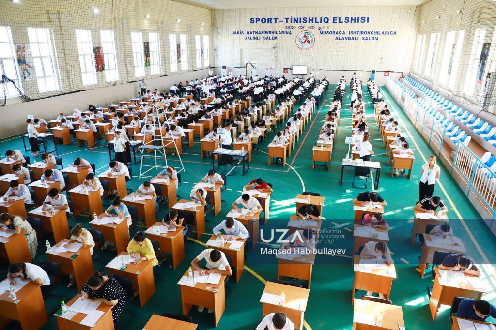 Бердақ номидаги Қорақалпоқ давлат университетининг спорт саройида ҳам олий ўқув юртларига кириш учун тест синовлари юқори савияда ташкил этилди. Ушбу жараённинг адолатли, шаффоф ва хавфсиз ўтишини таъминлаш мақсадида  олий ўқув юрти раҳбарияти бошчилигида профессор-ўқитувчилар, тест жараёнларига бириктирилган масъул ходимлар, волонтёрлар фаол иштирок этмоқда. Бундан ташқари, тест синовлари давомида жамоат тартибини сақлаш, абитуриентлар ва уларнинг яқинлари хавфсизлигини таъминлашга ҳам алоҳида эътибор қаратилган.