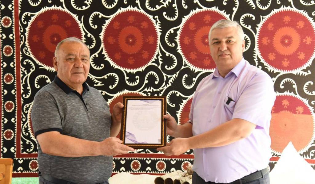 Самарқанд вилояти адлия бошқармаси бошлиғи ўринбосари Шуҳрат Абдуҳалимов "Конигил-Мерос" ҳунармандчилик маркази раҳбари Зариф Мухторовга географик кўрсаткич ҳужжатини топширди.