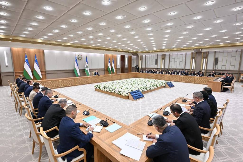 Президент Шавкат Мирзиёев раислигида дунёда юз бераётган иқтисодий тебранишларнинг мамлакатимиз соҳа ва тармоқларига таъсирини юмшатиш чора-тадбирлари юзасидан видеоселектор йиғилиши давом этмоқда.