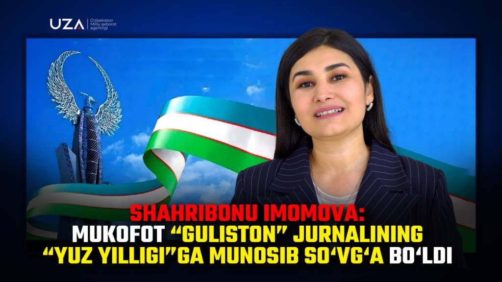 <iframe width="1326" height="746" src="https://www.youtube.com/embed/t46KAcQDKqI" title="Shahribonu Imomova: Mukofot "Guliston" jurnalining — yuz yilligiga munosib sovg`a bo`ldi " frameborder="0" allow="accelerometer; autoplay; clipboard-write; encrypted-media; gyroscope; picture-in-picture; web-share" referrerpolicy="strict-origin-when-cross-origin" allowfullscreen></iframe>М.Турдалиева, А.Аҳмедов, ЎзА