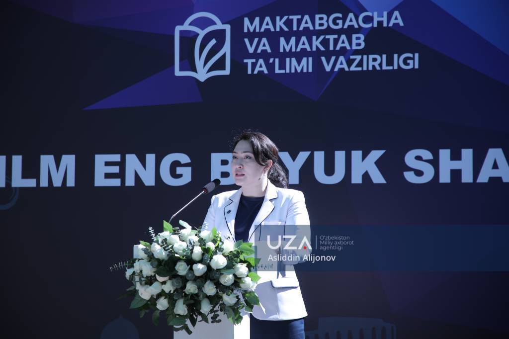 Давлатимиз раҳбарининг мамлакатимиз мактабларини битирувчи ўғил-қизларига табригини Ўзбекистон Республикаси мактабгача ва мактаб таълими вазири Ҳилола Умарова ўқиб, эшиттирди.