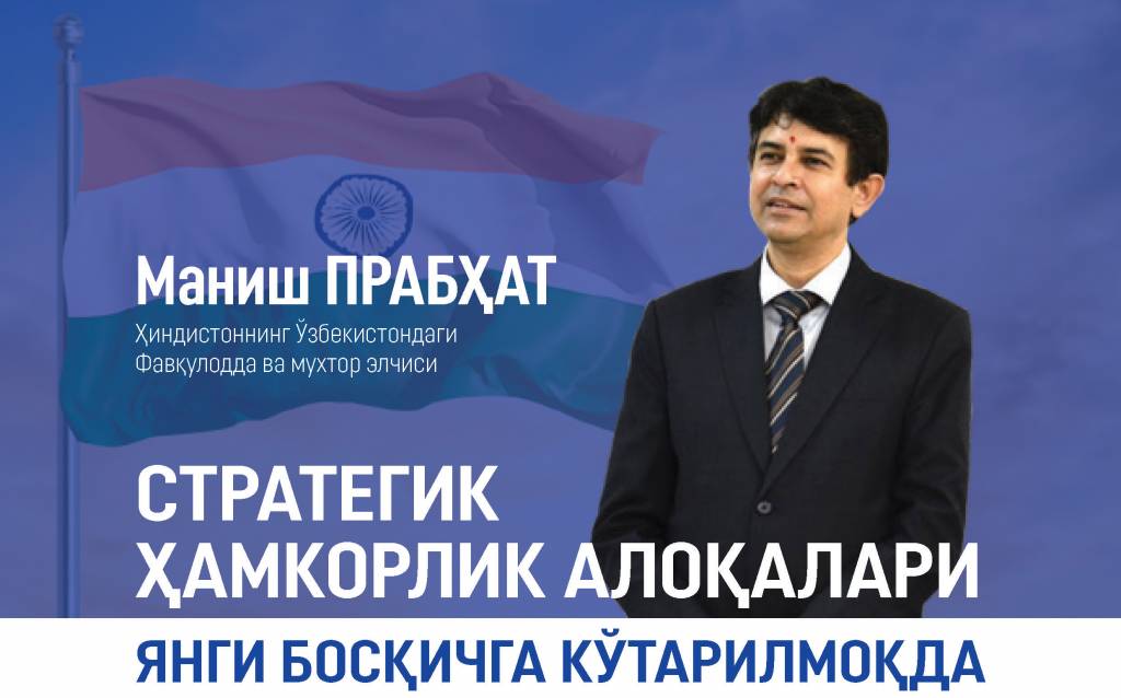 Элчи сифатида ўзим ҳам Ўзбекистон билан Ҳиндистон ўртасидаги кенг қамровли алоқани янада ривожлантириш учун бор куч-ғайратимни, тажриба ва билимимни сафарбар этишни, сидқидилдан меҳнат қилишни шарафли бурчим, деб биламан, дея таъкидлайди Ҳиндистоннинг Ўзбекистондаги Фавқулодда ва мухтор элчиси Маниш ПРАБҲАТ.
