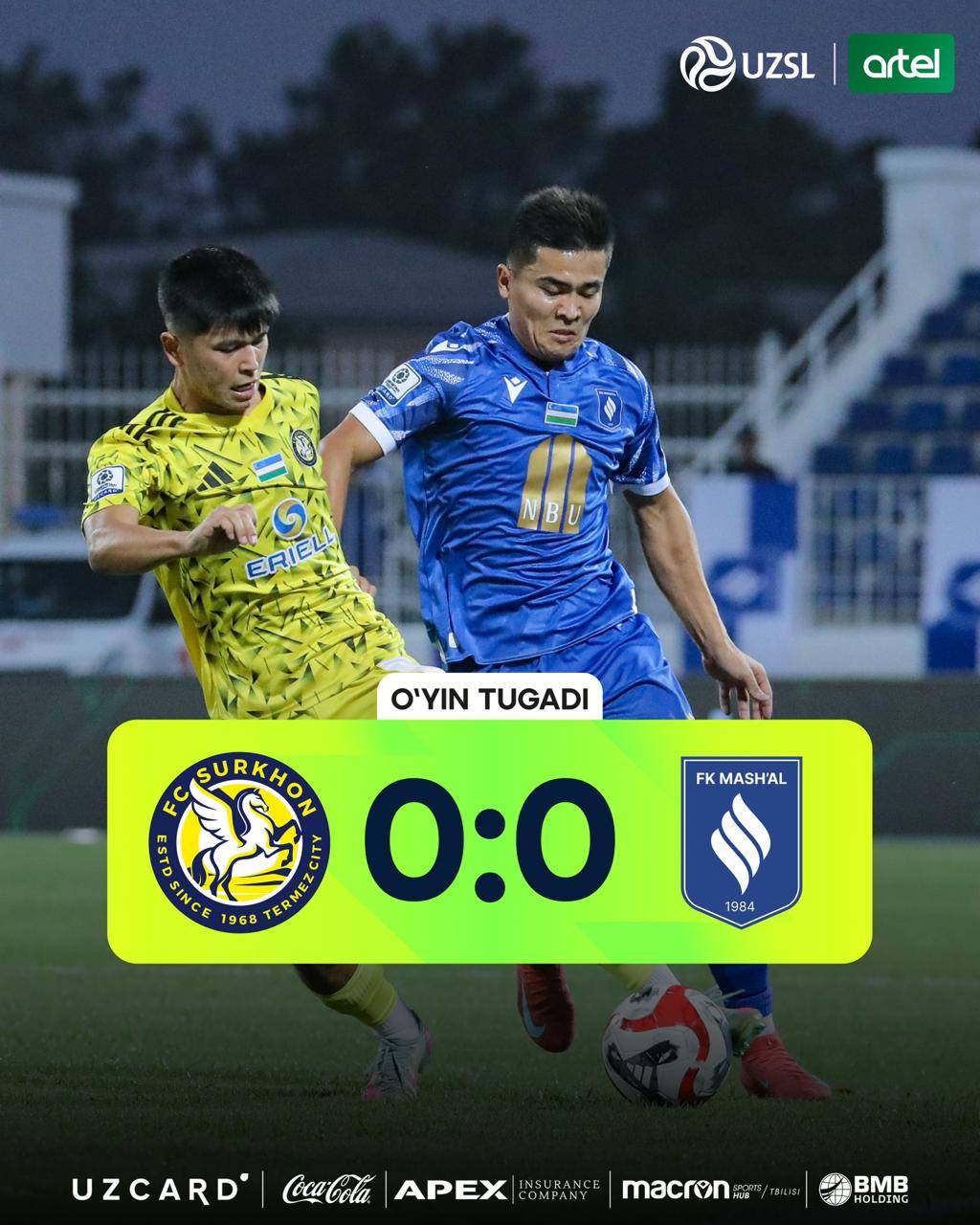 Футбол бўйича Ўзбекистон Суперлигасининг 22-турини “Сурхон” – “Машъал” жамоалари баҳси бошлаб берди. Термиз шаҳридаги “Surxon Arena” стадионида ўтган мазкур клублар учрашувида ҳисоб очилмади. Натижада "Сурхон" очколар сонини 25 тага етказиб олди. "Машъал"да эса 22 очко бор.