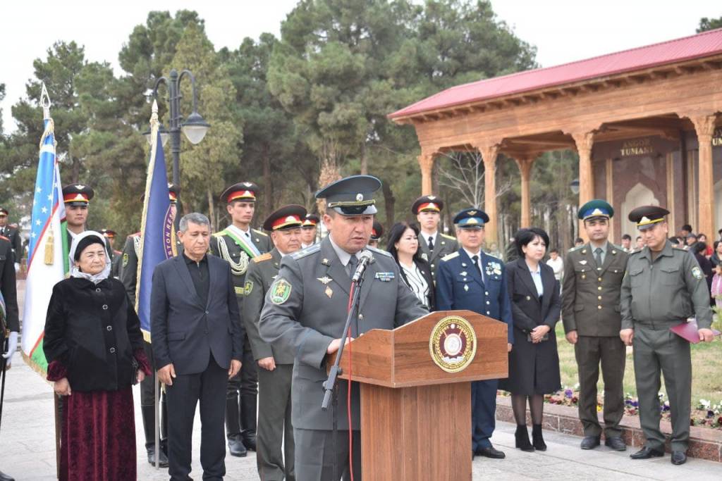 Тантанали тадбирда Жанубий оператив қўмондонлиги бошлиғи, полковник П. Сативалдиев Миллий армиямизда амалга оширилаётган кенг кўламли ислоҳотларнинг тинч, фаровон ҳаётимизни таъминлашдаги ўрни ҳақида атрофлича фикр юритди. Чақирилувчиларнинг Ватан олдидаги йигитлик бурчини шараф билан ўташига омад тилаб, уларнинг Амир Темур, Бобур, Жалолиддин Мангуберди каби буюк аждодларимиз жасоратига содиқ бўлишига катта ишонч билдирди.