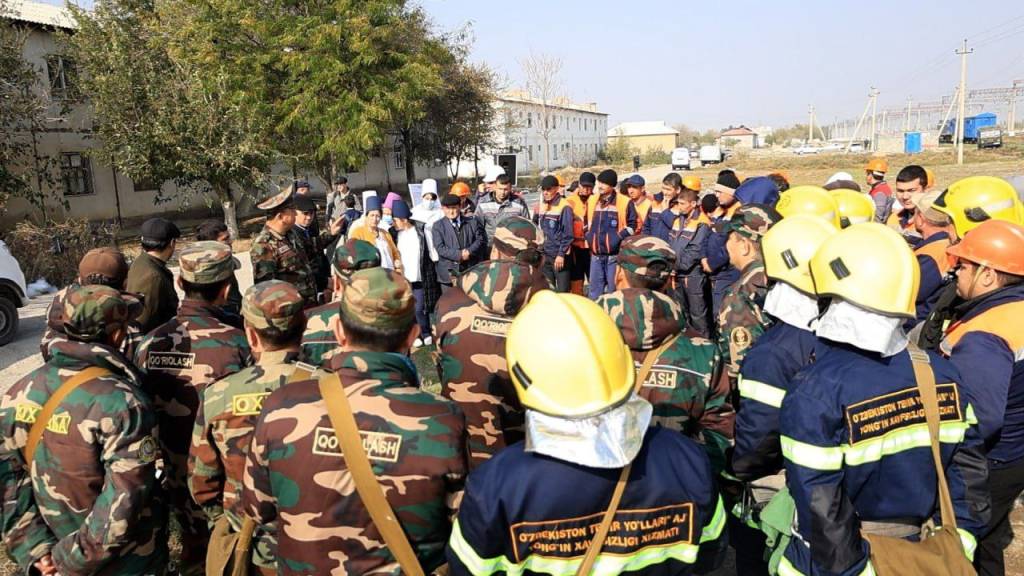 Сирдарё вилоят фавқулодда вазиятлар бошқармаси Янгиер темир йўл станцияси ҳудудида “Зилзила оқибатида содир бўлган техноген хусусиятли фавқулодда вазият, ёнғинлар содир бўлганда ва кучли таъсир этувчи заҳарли моддалар тарқалганда объект раҳбарияти, қутқарув тузилмалари ҳамда фавқулодда вазиятлар давлат қуйи тизим хизматларининг ҳамкорликдаги ҳаракатлари” мавзусида махсус-тактик ўқув машқи ўтказди.
