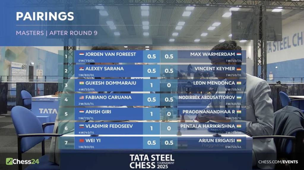 Чемпионликка асосий номзодлардан бири ҳиндистонлик Доммаражу Гукеш оқ доналарда ҳамюрти Леон Люк Мендонкадан устун келди. 3-ўринда бораётган Рамешбабу Праггнанандха нидерландиялик Аниш Гирига имкониятни бой бериб қўйди. 5 очко билан кейинги поғонада жойлашган асли россиялик ҳозирда Словения шарафини ҳимоя қилаётган Владимир Федосеев ҳинд вакили Пентала Харикришнани енгди.