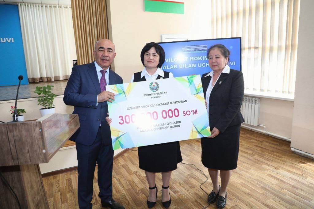 Учрашувда Тошкент вилояти ҳокими мазкур лойиҳани фаол қўллаб-қувватлагани учун 17-умумий ўрта таълим мактаби директори Зебо Маҳкамовага 300 миллион сўм пул мукофотини топширди. Ушбу мактаб 50 кундан буён янги лойиҳани фаол амалиётга татбиқ қилмоқда.
