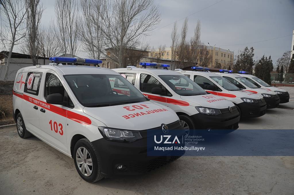 Ҳозиргача қарийб 340 та “Volkswagen Caddy” жойларга етказиб берилди. Ушбу автомобиллар тақсимоти ҳудудлардаги аҳоли сони ва тез тиббий ёрдам машиналарини янгилаш эҳтиёжидан келиб чиққан ҳолда шакллантирилмоқда. Тез ёрдам тизимидаги барча автомобиллар 100 фоиз GPS билан таъминланган.