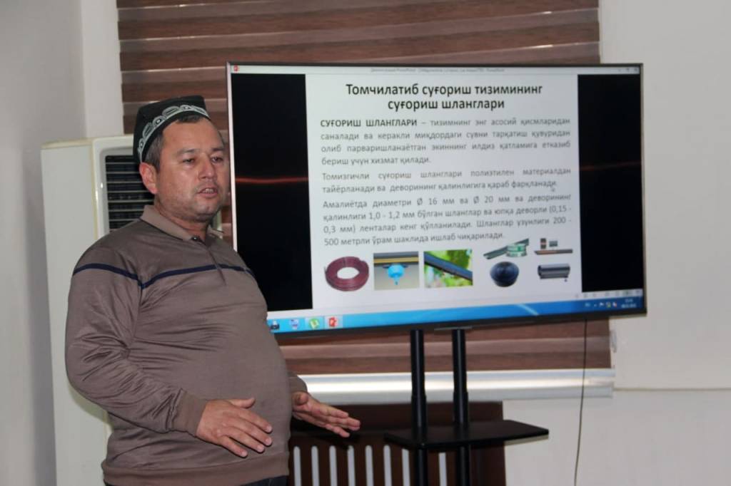 Мутахассислар томонидан томчилаб, ёмғирлатиб суғориш технологиялари, шунингдек, эгилувчан қувурлар орқали суғориш усулини жорий этиш тартиблари, харажатлари, самара ва натижалари, мазкур йўналишда иш олиб борувчи мутахассислар билим ва малакасини ошириш, уларни ўқитиш бўйича тавсия ва таклифлар билдирилди.