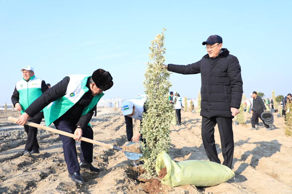 Дастлаб семинар иштирокчилари Янги Андижон шаҳри ҳудудида ташкил этилган “Замонавий эко боғ”га рамзий дарахт экиш тадбирида иштирок этди. Улар томонидан мазкур боғга манзарали ва мевали дарахт кўчатлари ўтқазилди.