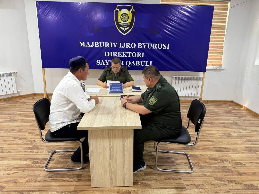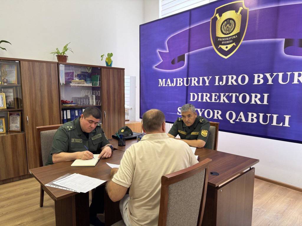 Хусусан, Олмалиқ шаҳар ва Оққўрғон туманида ўтказилган сайёр қабуллар давомида, фуқароларнинг турли масалаларга оид мурожаатлари мутасаддилар томонидан тингланди. Хусусан, суд қарорларининг ижросига оид мурожаатлар Мажбурий ижро бюроси директори М.Эгамбердиев ва директор ўринбосари З.Ҳолмуҳамедов томонидан қабул қилинди. Ўтказилган қабул жараёнида, ҳудудлардан келган 18 дан ортиқ фуқаролар алимент, иш ҳаққи, компенсация, қарз ундириш ва бошқа ижро ишлари бўйича ўз мурожаатларини қолдирди. Бюро раҳбарияти томонидан мурожаатчилар ўрганилиб, уларни тез муддатларда ҳал этиш учун масъулларга топшириқлар берилди.