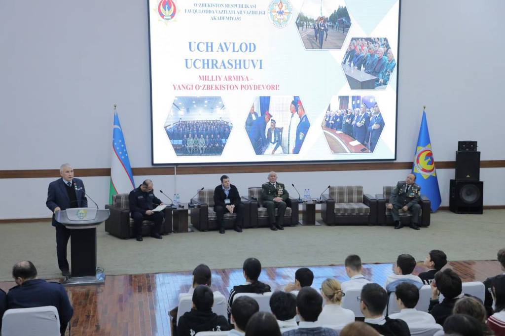 Фавқулодда вазиятлар вазирлиги академиясида "Миллий армиямиз — Янги Ўзбекистон пойдевори" шиори остида “Уч авлод учрашуви” маънавий-маърифий тадбири бўлиб ўтди.