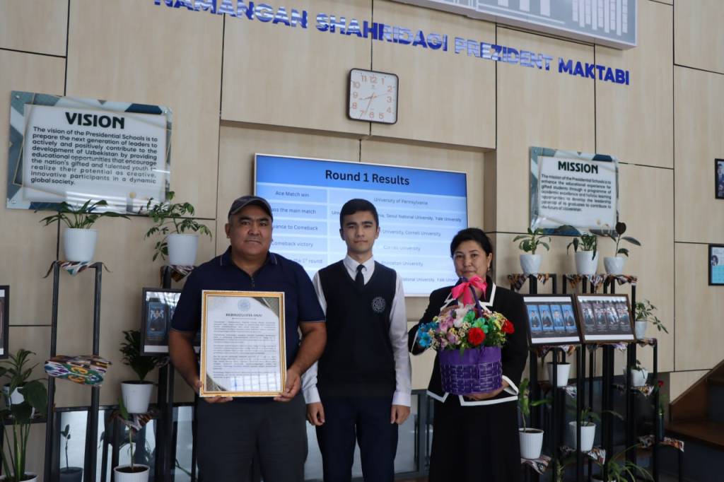 –Энг ширин туйғу фарзандинг ортидан айтилган мақтов, – дейди қаҳрамонимизнинг отаси Маъруфжон Мадаминов. – Ўғлим Улуғбекдан умидларим катта. Онаси иккимиз фарзандимизнинг таълим олиши учун қўлдан келганча ҳаракат қилдик. Фарзандли бўлиш, уни вояга етказиш ота-она учун катта бахт. Билимли фарзанд ўстириш ва унинг ортидан раҳматлар эшитиш икки карра бахт. Фарзандимнинг информатика фани доирасида юксалиб бораётган салоҳиятини, меҳнатларини қадрлайман. Олдида турган масъулиятли вазифани шараф билан адо этишига ишонаман. Аминманки, у глобал миқёсда ҳам рақобатлаша олишини яққол намоён этади.