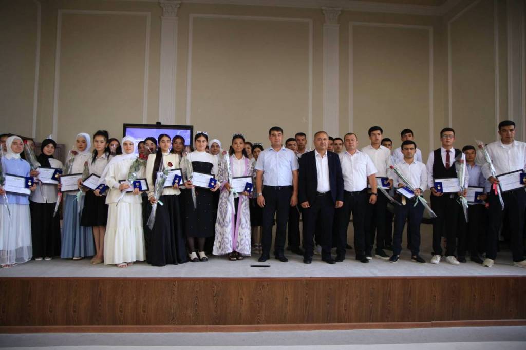 Битирувчиларга медалларни тантанали топшириш маросимда туман ҳокимлиги масъуллари ва туман фаоллари иштирок этиб, истеъдодли ёшларни табриклаб, уларнинг ота-оналарига миннатдорлик билдирдилар.