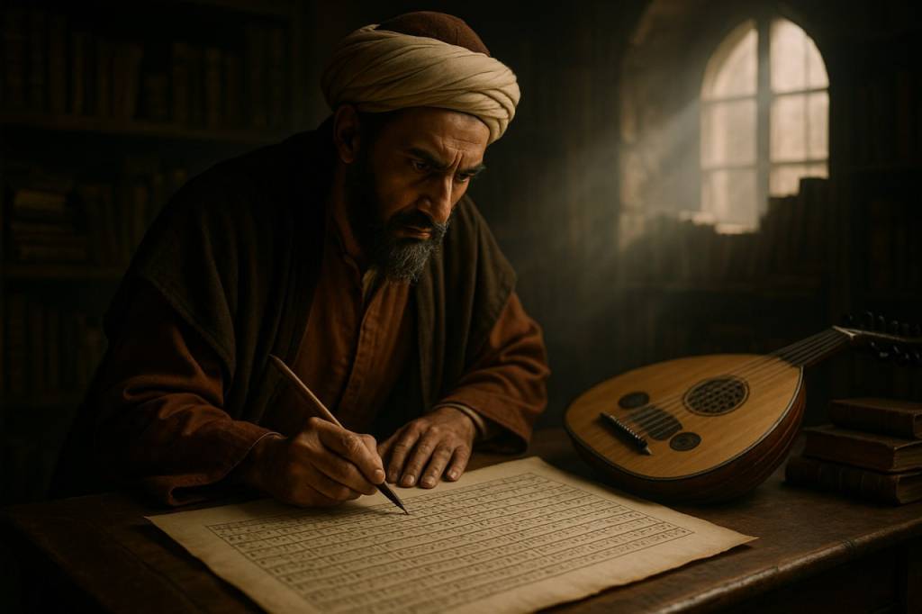 Шарқда мусиқа назариясининг пойдевори IX– XIII асрларда яшаб ўтган буюк мутафаккирлар томонидан қўйилган. Киндий, Абу Наср Форобий ва Абу Али ибн Сино каби қомусий олимларнинг асарларида овоз, интерваллар, пардалар ва ритм ҳақидаги таълимотлар чуқур таҳлил қилинган. Айниқса, Форобийнинг “Мусиқа ҳақида катта китоб” асари бу соҳада туб бурилиш ясади. Унинг мусиқа назариясини тушунтириш учун ишлаб чиққан жадваллари, гарчи тўлиқ нота ёзуви бўлмаса-да, овозларни тизимли қайд этишга бўлган илк жиддий уринишлар эди. Бу илмий заминсиз XIII асрдаги кашфиётнинг дунёга келиши мумкин эмас эди.