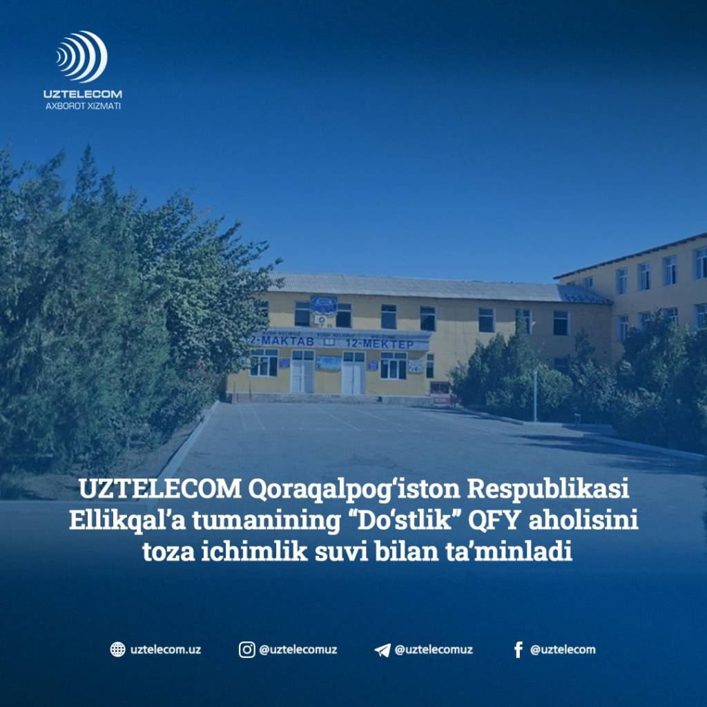 Қорақалпоғистон Республикаси Элликқалъа туманидаги Дўстлик қишлоқ фуқаролар йиғинида UZTELECOM кўмагида қурилган янги тоза ичимлик суви шохобчаси ишга туширилди.