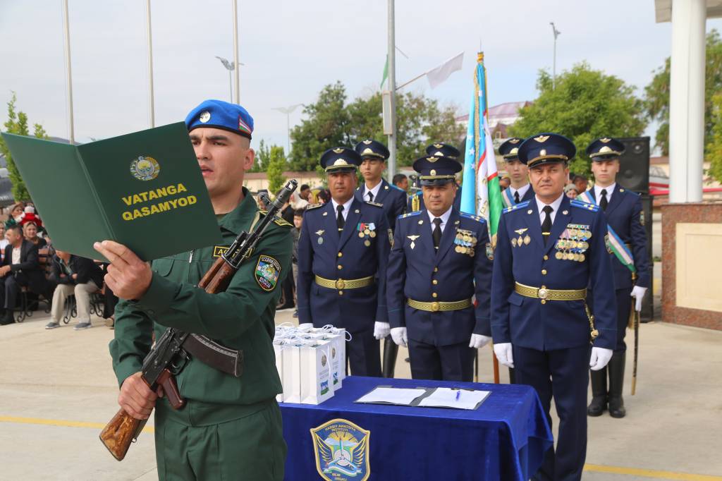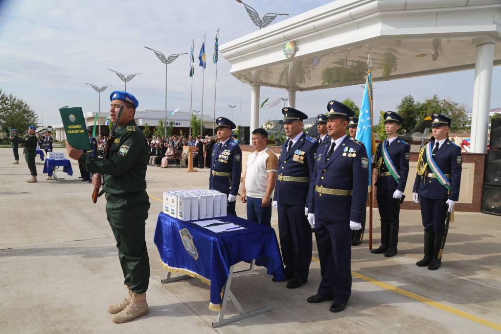 Ота-оналар, фахрий меҳмонлар, шунингдек, давлат ва жамоат ташкилотларидан ташриф буюрган вакиллар навқирон юрт посбонларининг келгусидаги хизматларида букилмас ирода ҳамда улкан зафарлар тилади. Ҳарбий блок чиқишлари, маданият ва санъат намоёндаларининг байрамона куй-қўшиқлари меҳмонларга хуш кайфият бағишлади.