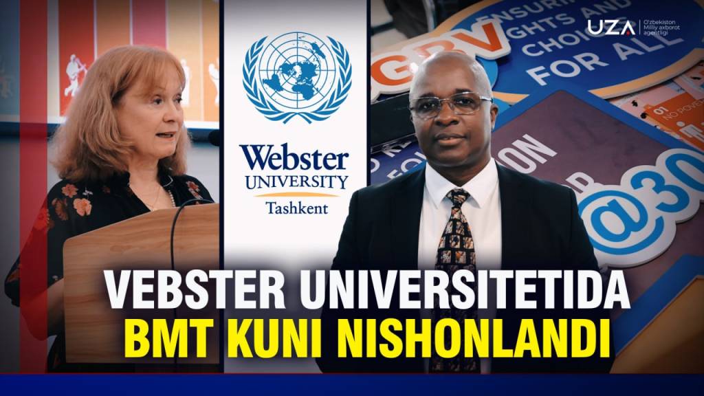 Бугун пойтахтимиздаги Вебстер университетида БМТ ташкил этилганига 78 йил тўлиши муносабати билан тадбир ўтказилди. Унда БМТнинг Ўзбекистондаги ваколатхонаси раҳбарияти, Олий Мажлис Сенати аъзолари, турли дипломатик корпус вакиллари ва талаба ёшлар иштирок этишди.