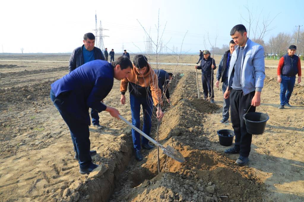 Жиззах вилоятида “Яшил макон” умуммиллий лойиҳаси доирасида “Ҳар бир фуқаро учун – бир дарахт” тамойили асосида Жиззах воҳасида жорий йилнинг баҳорги кўчат экиш мавсумида вилоят бўйича жами 9 миллион 843 минг 500 туп манзарали ва мевали дарахт ҳамда бута кўчатлари экилиши белгиланган эди.