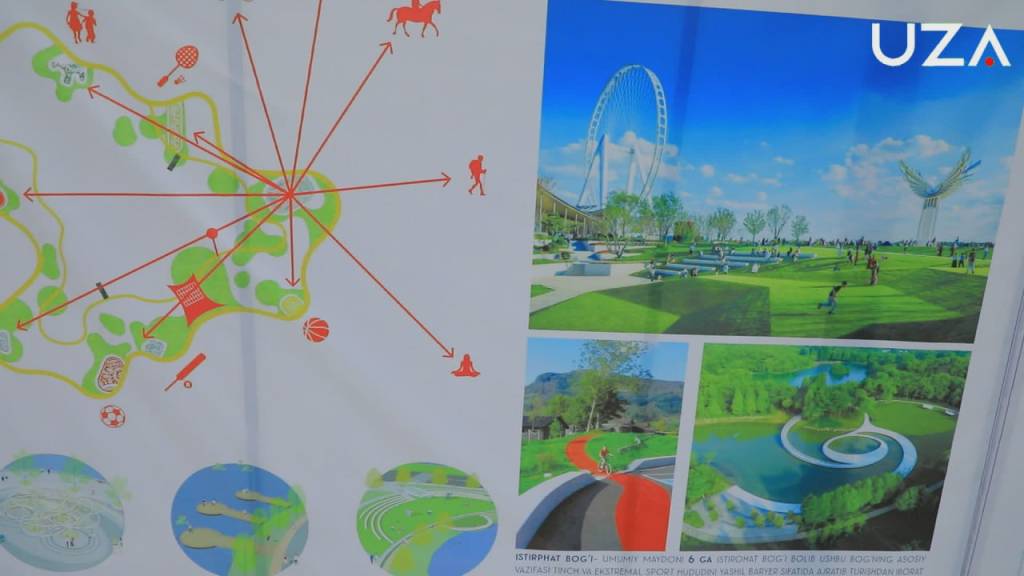 Яшил ҳудудга павлония, калифорния тераги, оқ қайин кўчатлари экилади. Орасида бемалол юриш, дам олиш учун сунъий ҳовуз қилиниб, балиқ ташлаб қўйилади. Йўл четига бетон ариқ қилинади.