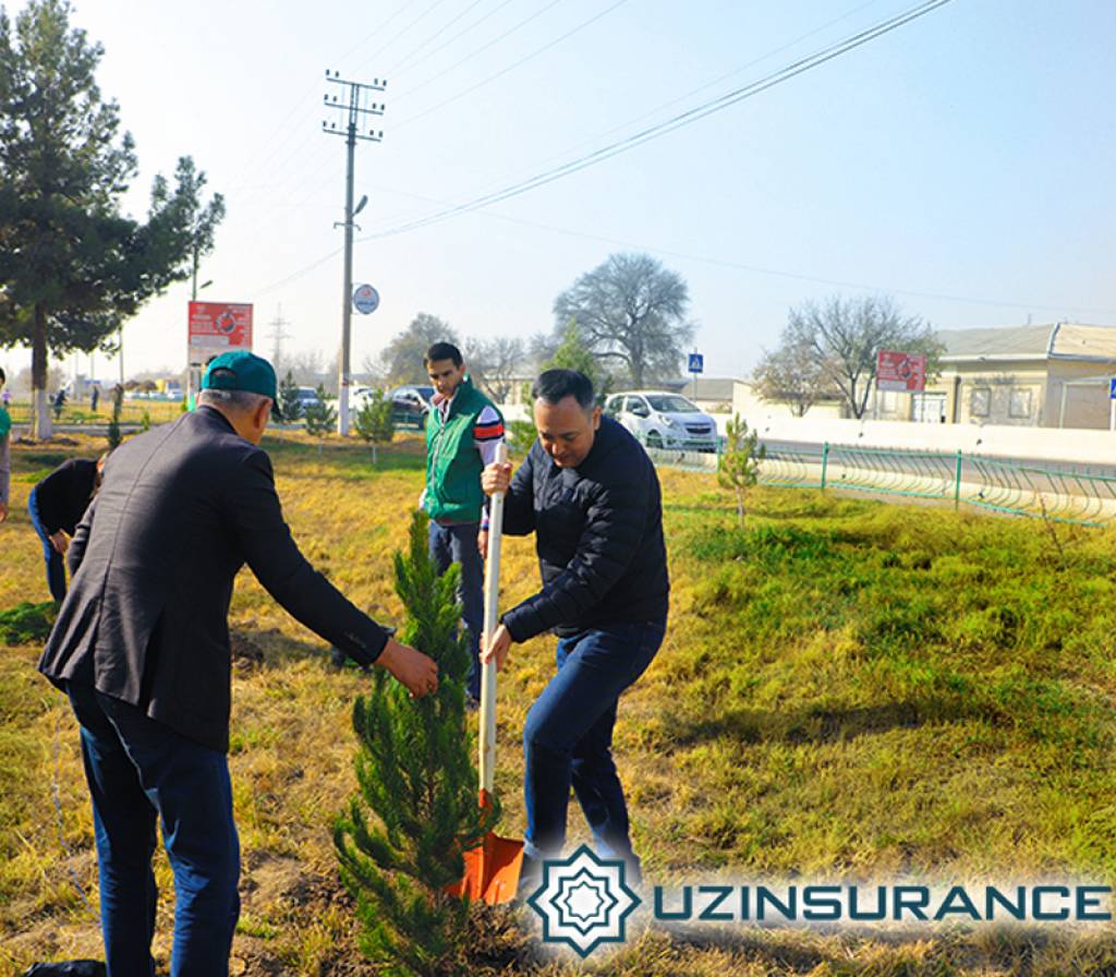 Бухоро вилоятидаги «UZINSURANCE» филиали биноси атрофи ва Бухоро туманидаги суғурта маркази яқинида жами 80 туп дарахт экилди. Хусусан, 20 та қайрағоч, 10 туп игна баргли арча ва яна 10 тупдан шафтоли, олма ва қароли кўчатлари ўтқазилди.