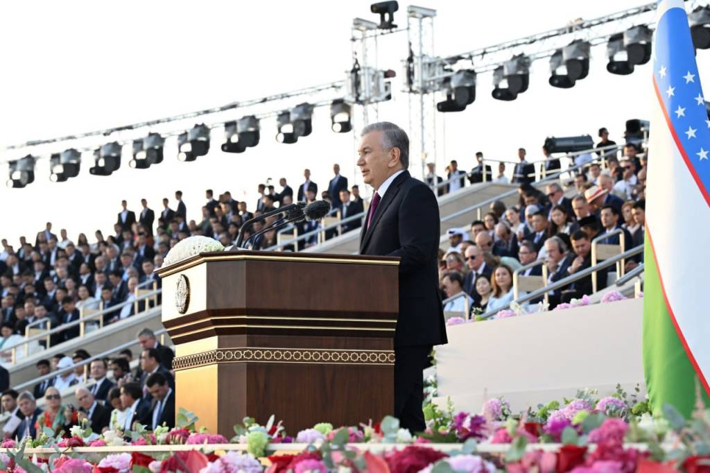 “Янги Ўзбекистон” боғида мамлакатимиз давлат мустақиллигининг 34 йиллигига бағишланган байрам тадбирида Ўзбекистон Республикаси Президенти Шавкат Мирзиёев нутқ сўзламоқда.