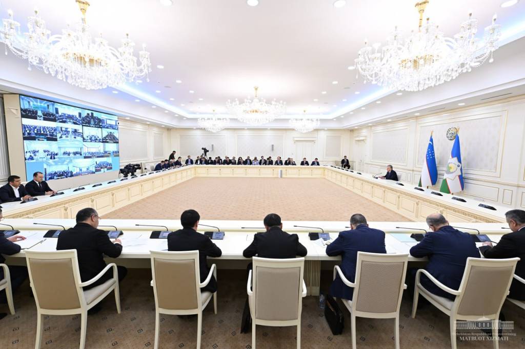 Президент раислигида ўтказилаётган йиғилишда тўқимачилик тармоғидаги йирик корхоналарнинг маҳаллаларда филиалларини ташкил қилиш амалиётини кенгайтириш зарурлиги қайд этилди.