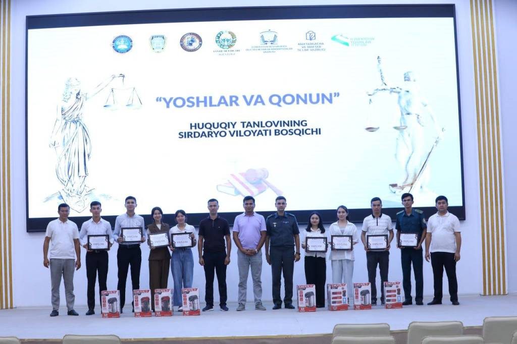 Сирдарё вилоятининг Гулистон шаҳридаги Ёшлар марказида “Ёшлар ва қонун” Республика ҳуқуқий танловининг вилоят босқичи бўлиб ўтди.
