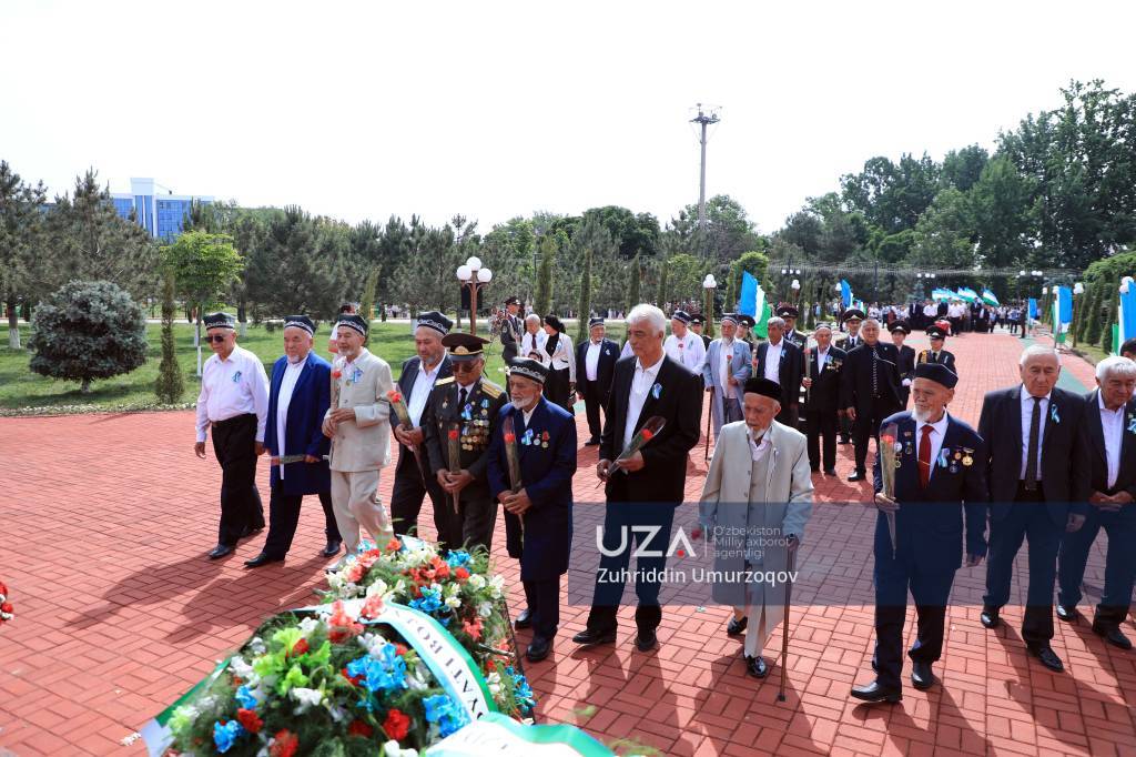 Дастлаб уруш ва меҳнат фахрийлари, ҳарбийлар, кенг жамоатчилик вакиллари ҳамда ёшлар томонидан Хотира хиёбонига ўрнатилган Мотамсаро она ҳайкали пойига оркестр садолари остида гулдасталар қўйилди.