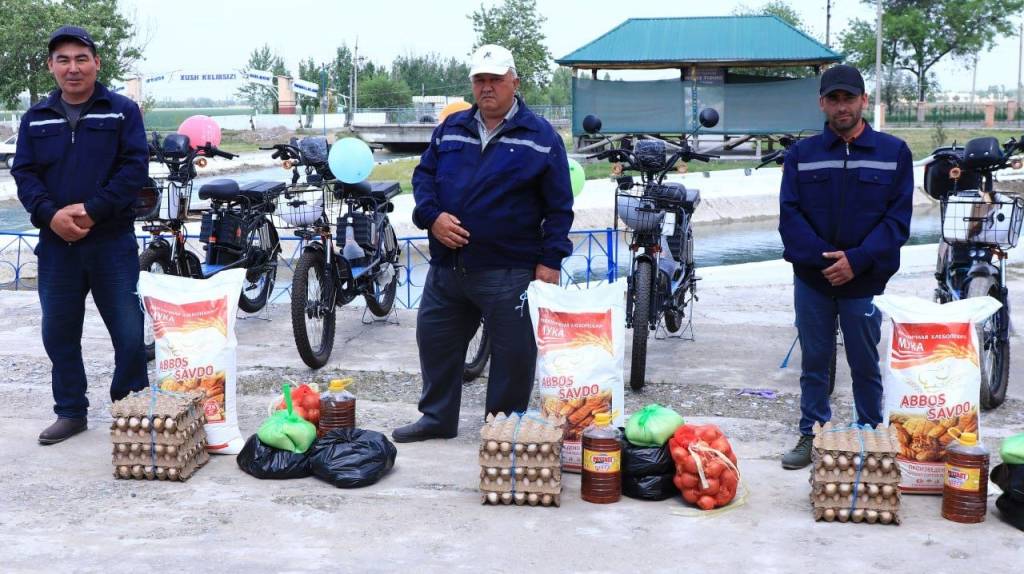 Унда 10 нафар сувчига “Cargo tricycle” русумли юк трицикллари, яна бир нафар ходимга эса уч ғилдиракли юк мотороллёри ҳамда озиқ-овқат маҳсулотлари топширилди. Ушбу кўмак уларнинг кундалик фаолиятини енгиллаштириш, далалар ва ирригация иншоотларида тезкор хизмат кўрсатиш имкониятларини кенгайтиришга хизмат қилади.